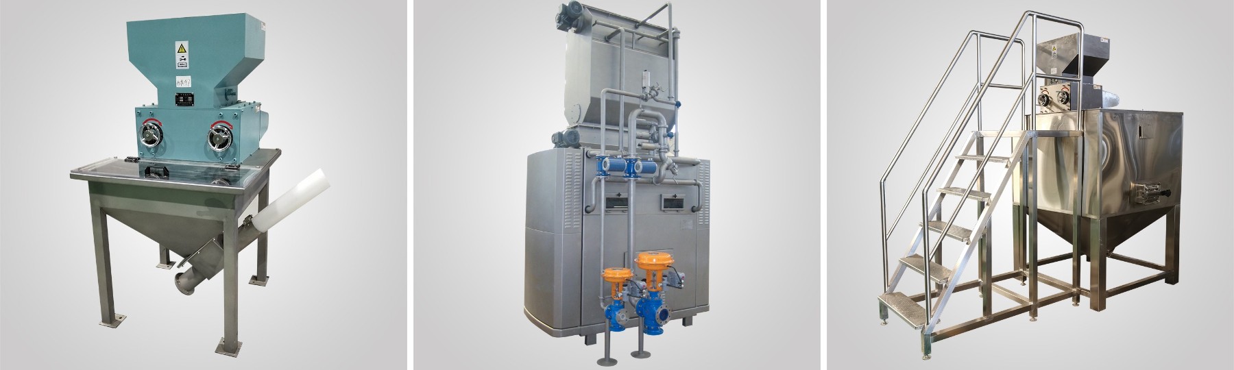 輸送設備: 不銹鋼螺旋輸送機,柔性輸送機,斗式提升機,管鏈輸送機,真空輸送機,水平刮板輸送機
